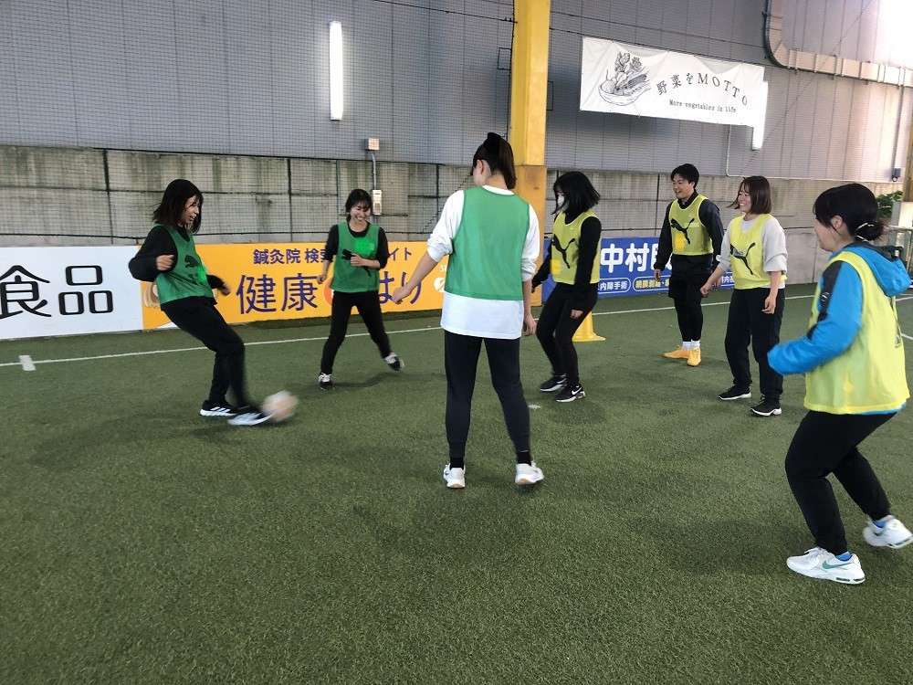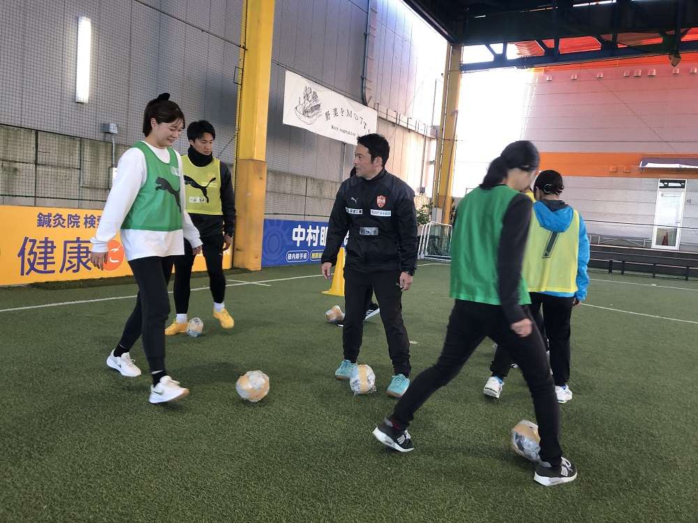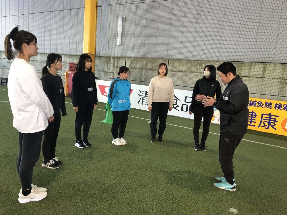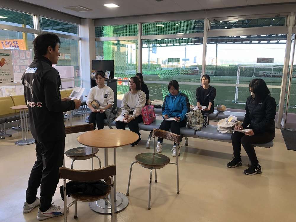 内容は、ピッチ上で1時間の実技、その後、資料を基に講義となっています。