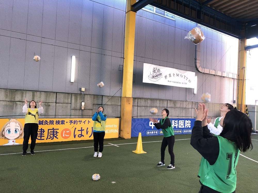 実技では、「アイスブレイク&ウォーミングアップ」、「ボールフィーリング系」、「新聞紙でボールづくり」、「ゲーム①、②」を行いました。先生方が各園で子どもたちといっしょに楽しんでもらえることが狙いとなっています。