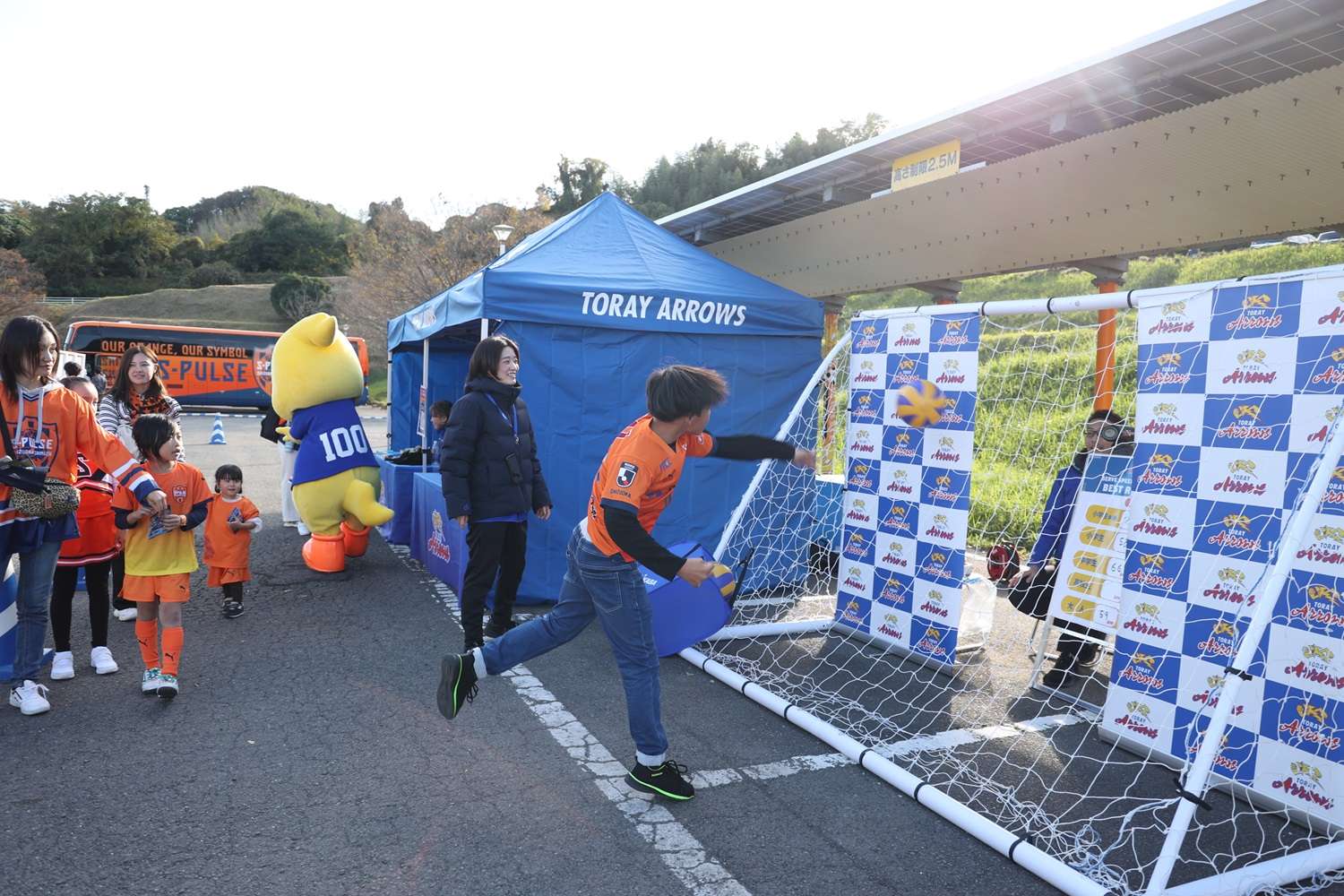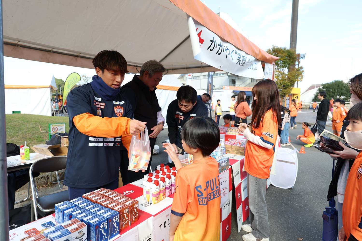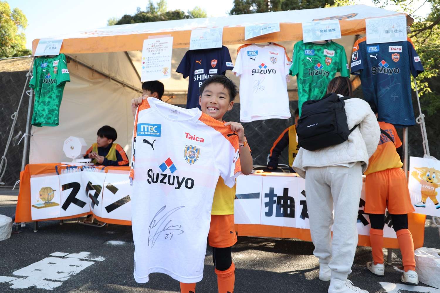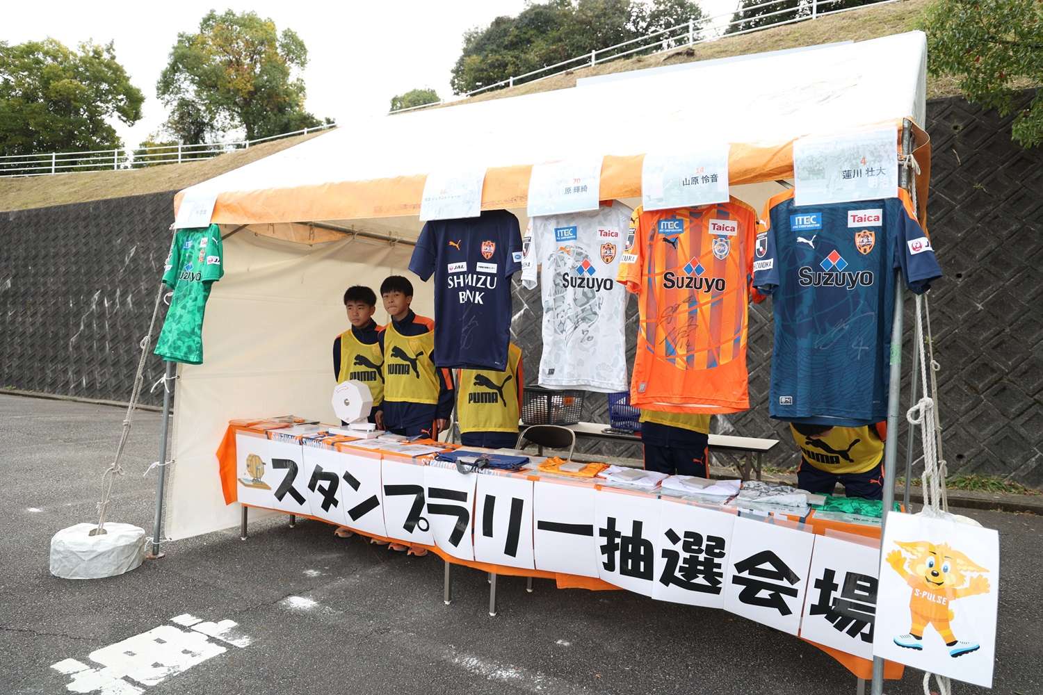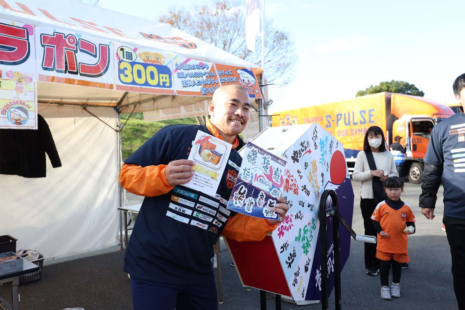 お昼休みイベントでは、「サッカースクールエリア対抗戦」を開催して、コーチのフットゴルフニアピン対決やスクール生も参加したエリア対抗リレーで盛り上がりました。最後に毎年恒例の「大抽選会」を行い、トップチーム選手のサイン入りのウェア、バックやJ1昇格記念品などなかなか手に入らない賞品の数々にパートナー様からご提供頂きました豪華賞品に、当選番号が発表されるごとに歓声が上がっていました。