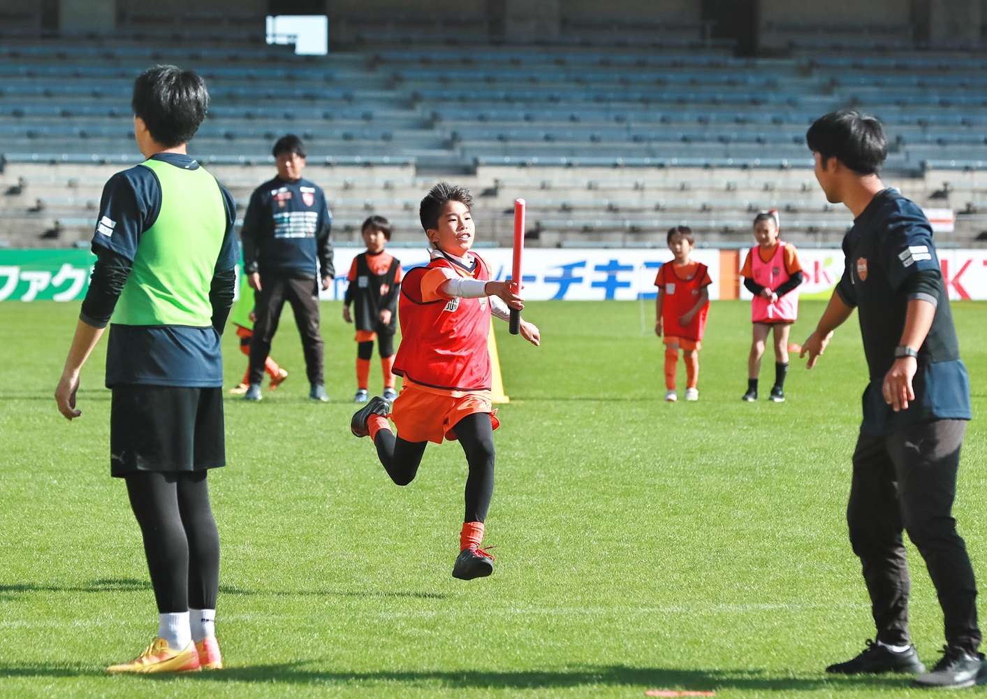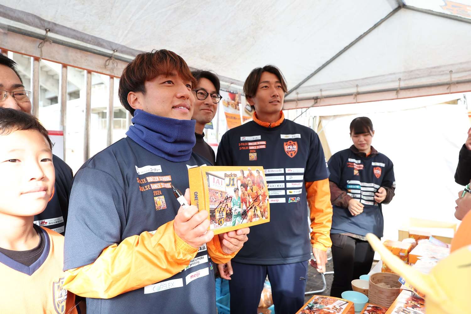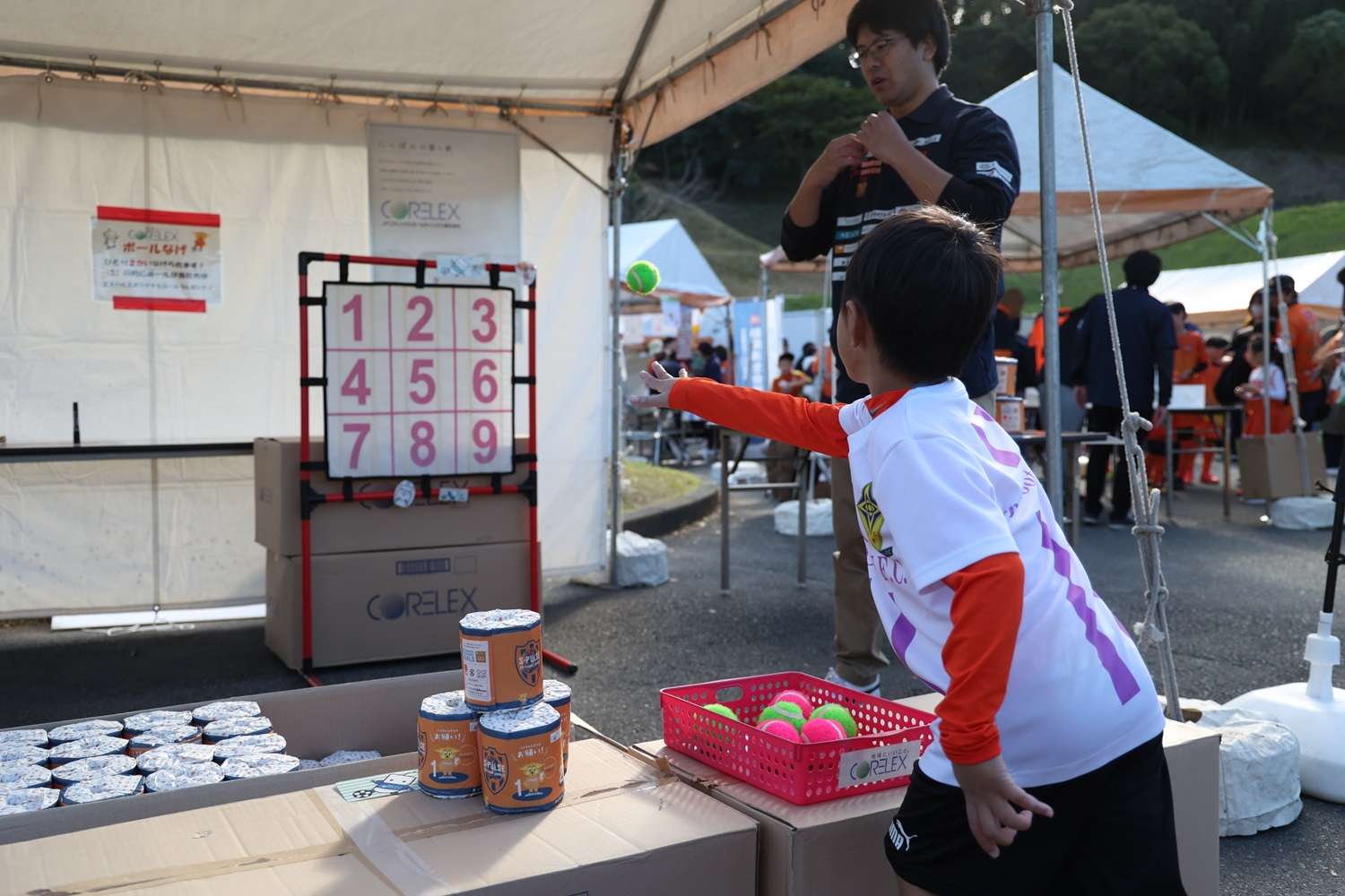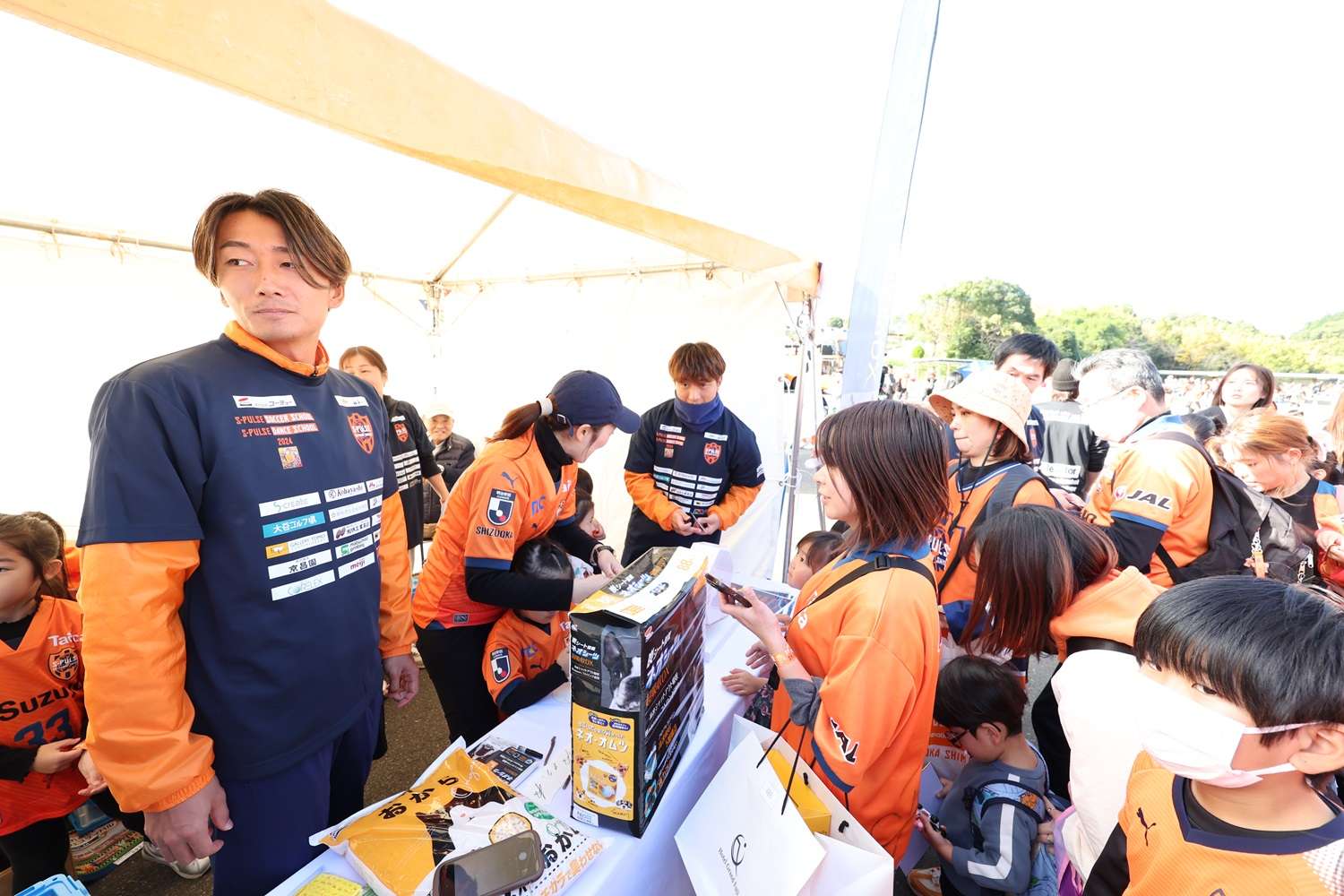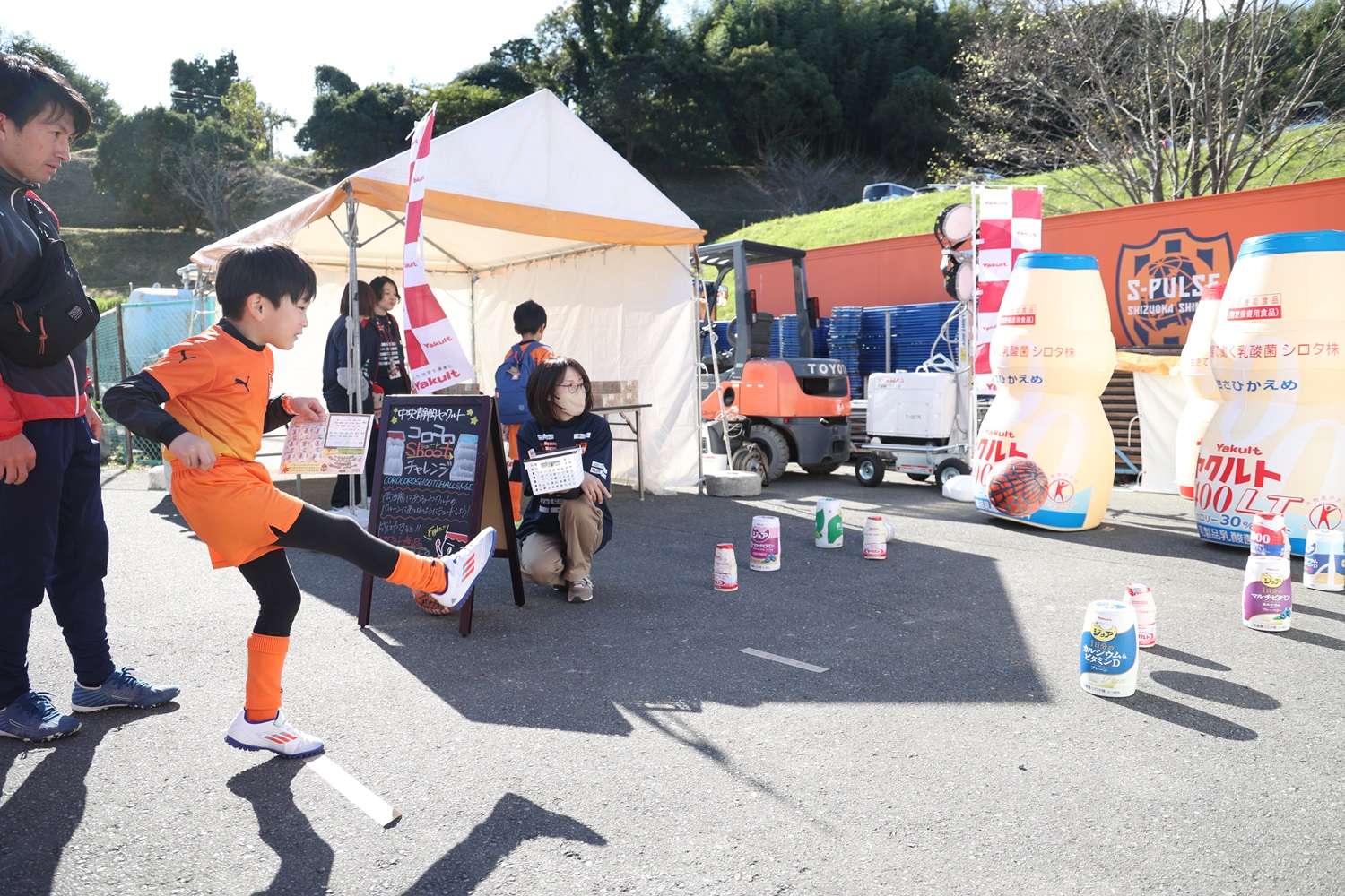 お昼休みイベントでは、「サッカースクールエリア対抗戦」を開催して、コーチのフットゴルフニアピン対決やスクール生も参加したエリア対抗リレーで盛り上がりました。最後に毎年恒例の「大抽選会」を行い、トップチーム選手のサイン入りのウェア、バックやJ1昇格記念品などなかなか手に入らない賞品の数々にパートナー様からご提供頂きました豪華賞品に、当選番号が発表されるごとに歓声が上がっていました。