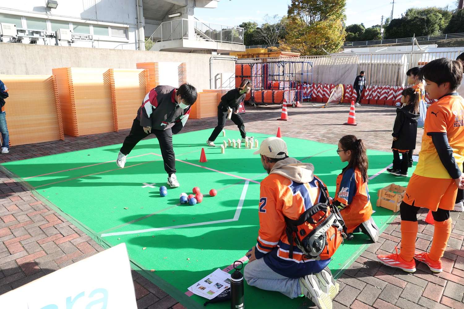 パラスポーツ体験コーナーでは、konoki様ご協力いただいた「モルック」「ボッチャ」「フライングディスク」「ブラインドサッカー」の体験コーナーは大盛況でした。
