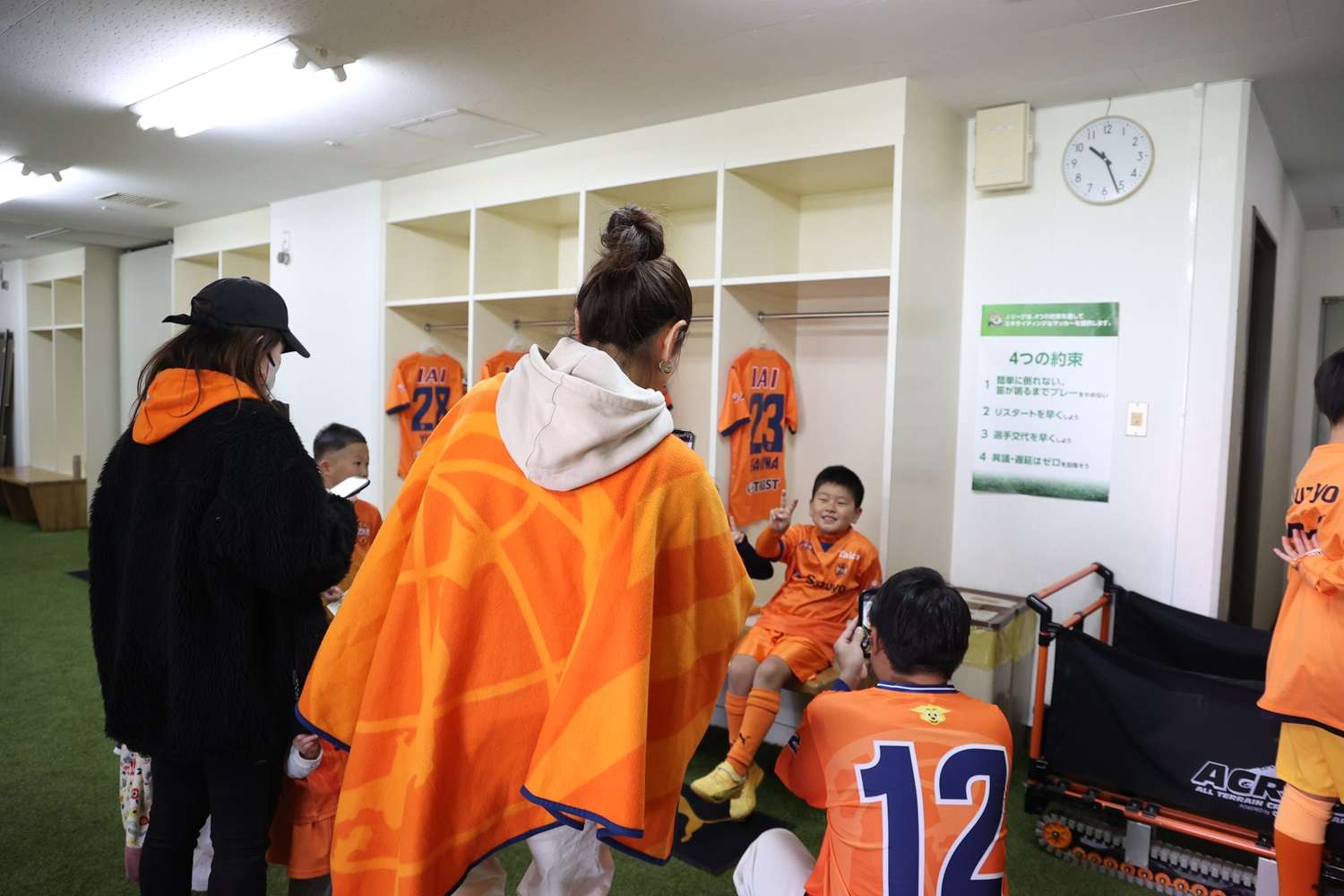 さらに、スタジアムスタンプラリーでは、アイスタ施設内のチェックポイントである選手ロッカーや記者会見室、記者室など、普段入場ができない部屋を周り、親子や友達と協力しながらスタンプラリーにチャレンジしていました。飲食コーナーには天神屋様、ストリートスタイル様、BlissCafe様といったスタジアムグルメでも人気のお店にご出店いただきました。