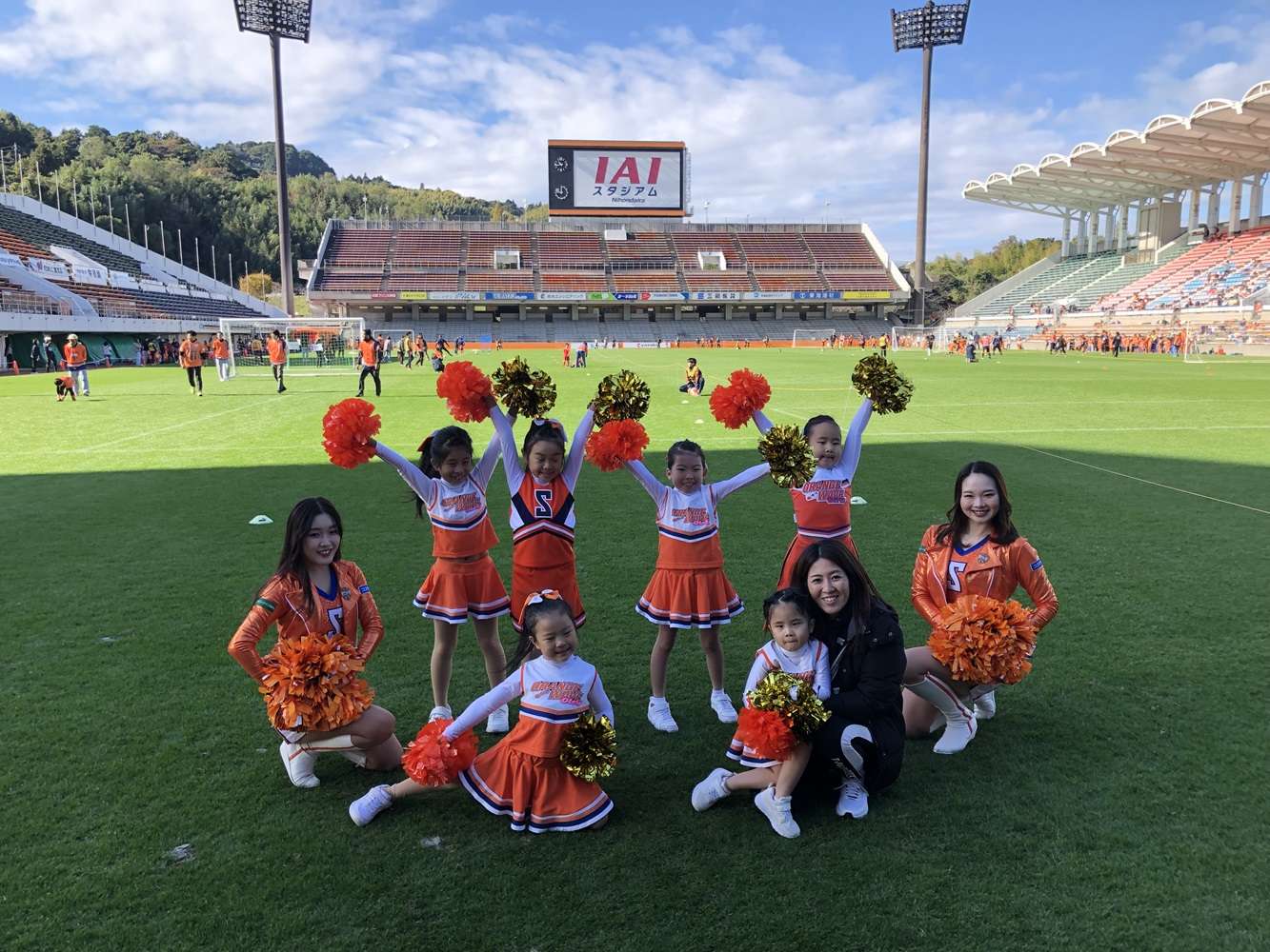ピッチ東スタンド前では、ダンススクールフォトスポットが登場!普段は撮影することができないアイスタのピッチの上で衣装での撮影会!オレンジウェーブの綾乃先生、あのん先生も撮影会に参加してくれて一緒に撮影しました。