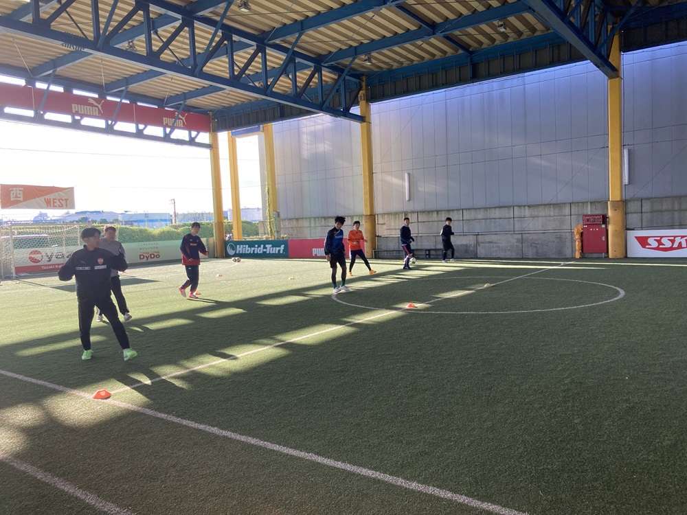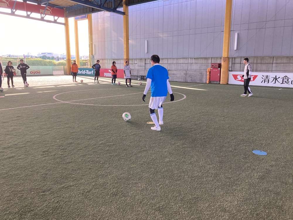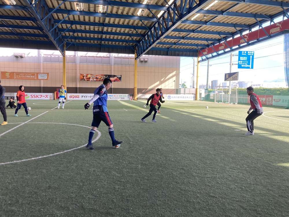 対面パスを行いました。様々なコントロールにチャレンジしました。正確に足元に止めるコントロールや、乾選手のような一瞬で前を向くコントロールも!その後、コントロールからシュートと1対1の対決!先ほどやった練習をたくさん発揮してくれました!たくさんゴールを決めていました!