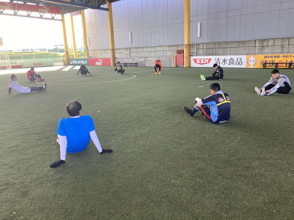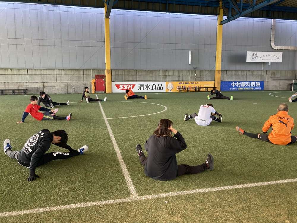 まずは、ウォーミングアップからスタート!ランニングやストレッチを行い、入念に体を温めます。