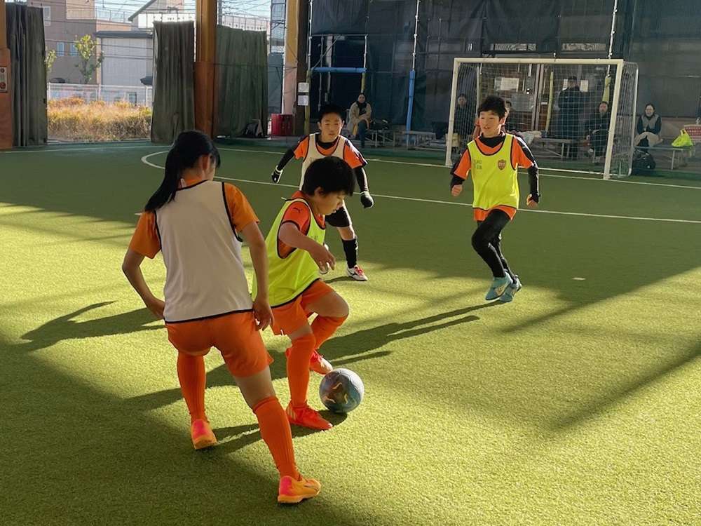 スモールサイドゲーム。毎試合メンバーを変え、仲間と作戦を立てるなど、協力している姿が見えました。