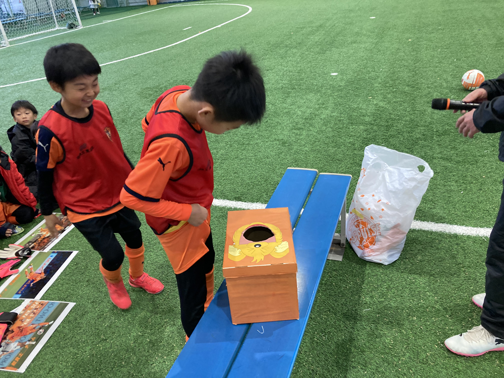 試合後に行われた大抽選会では、ユニフォームや色紙などのサイン入りグッズの当たるくじ引きをみんなで楽しみました!メリークリスマス!