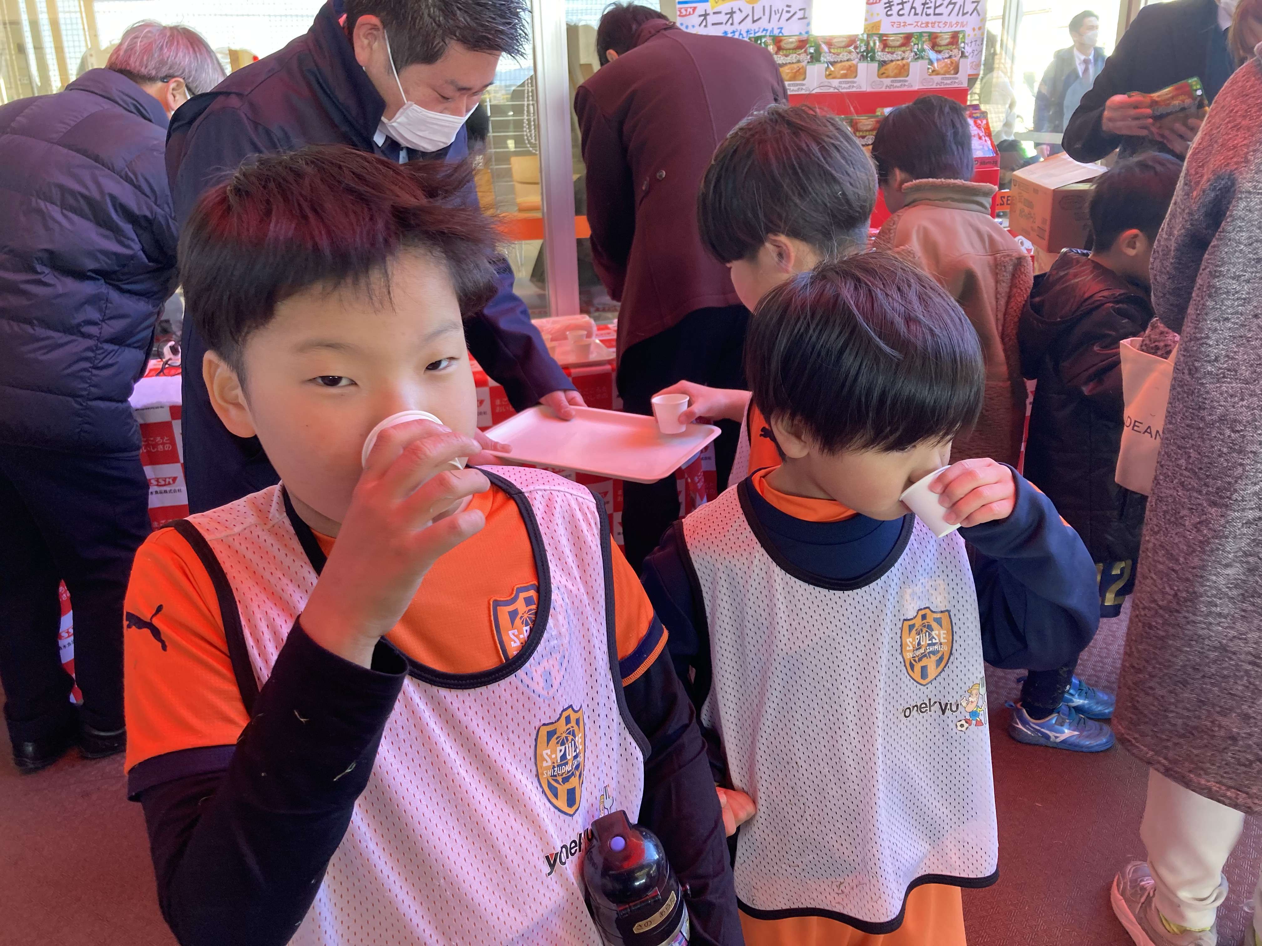 今回は清水食品様のスープの試飲コーナーもっ設置され、選手達は試合の合間にスープ飲んで身体を温めていました。