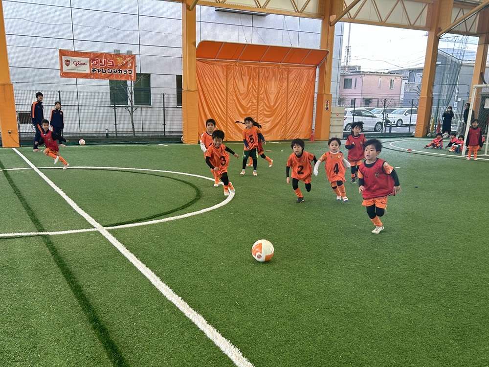 清水エスパルス藤枝エリアでは、1月25日(土)、エスパルスドリームフィールド藤枝にて、「グリコチャレンジカップキッズ大会」を開催いたしました。当日はエスパルスサッカースクールで日々サッカーの練習に取り組む年中・年長38名が参加してくれました!
