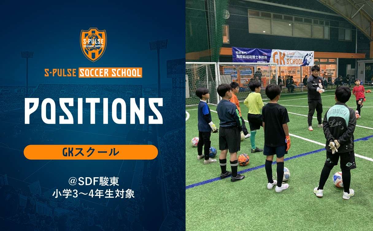 そこでエスパルスは、最も技術が向上する小学生年代に選手がGKの専門的な指導を受けられるような環境を整えるべきだと考え、『清水エスパルスGKスクール』を2018年に立ち上げました。選手が楽しく、真剣にGKのスキル向上を目指せる様、スタッフ一同、精一杯サポートさせていただきます。