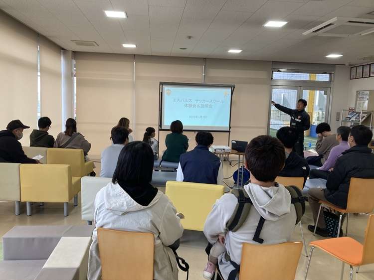 説明会の風景。エスパルスサッカースクールの特徴を幼児の特性と絡めて説明いたしました。