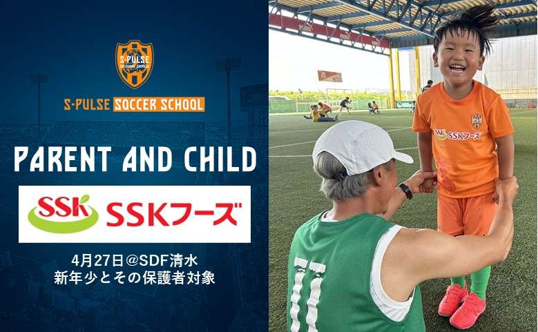 清水エスパルスは、4月27日(日)にエスパルスドリームフィールド清水にて、年少児のお子様1名と保護者1名の親子を対象とした『エスエスケイフーズpresents 親子で一緒に年少さんサッカー教室』を開催いたします。