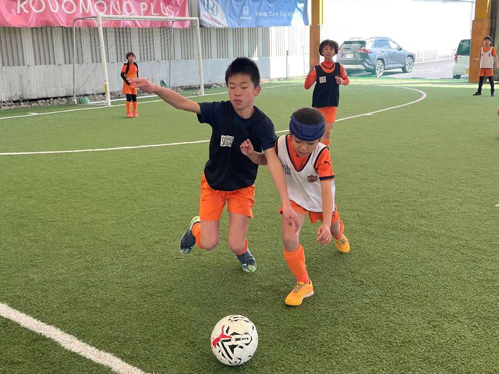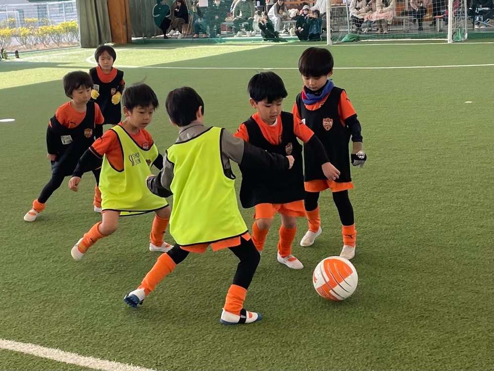 試合はそれぞれ総当たり戦を行い、子ども達は力強いシュートを決めたり、ゴール前の1対1の場面で防いだりなど、随所で素晴らしいプレーが見られました。