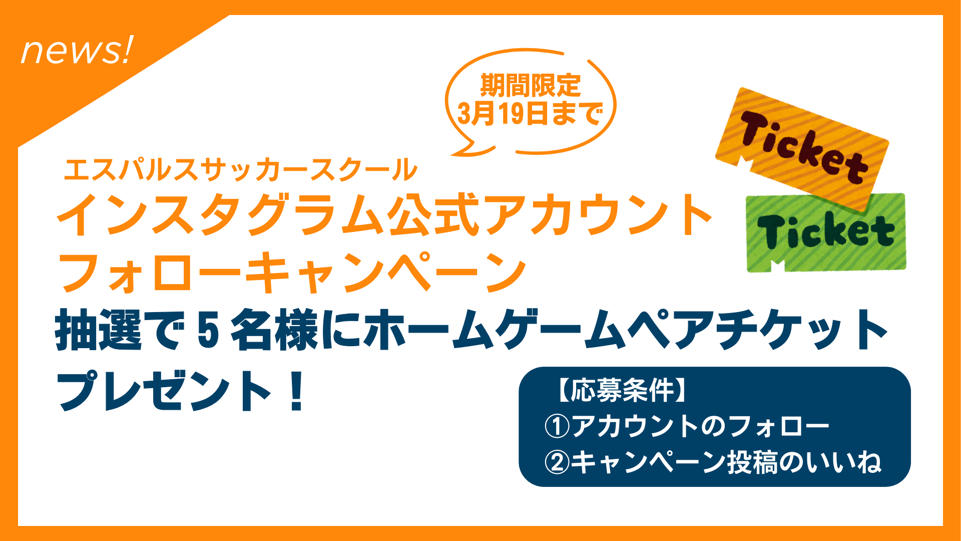 また公式インスタグラム開設を記念しまして、フォローとキャンペーン投稿のいいねでホームゲームぺアチケットが抽選で当たるフォローキャンペーンを実施いたします!応募期間や詳細は画像をご覧ください!