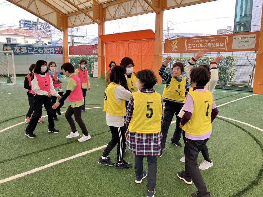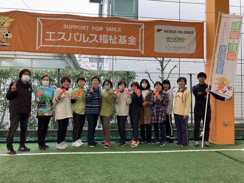 清水エスパルス藤枝エリアでは、3月13日(木)、エスパルスドリームフィールド藤枝にて、「ハッピーシニアプロジェクト」を開催いたしました。藤枝市役所のスポーツ復興課の方々にも協力していただき、当日は、60歳以上の方々12名が参加してくださいました。