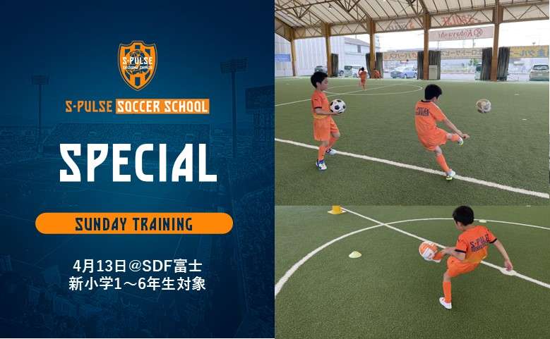 4月13日(日)にエスパルスドリームフィールド富士にて、新小学1年生~6年生を対象に「Sundayトレーニング」を開催いたします。つきましては、参加者を募集いたしますので、以下の通りお知らせします。