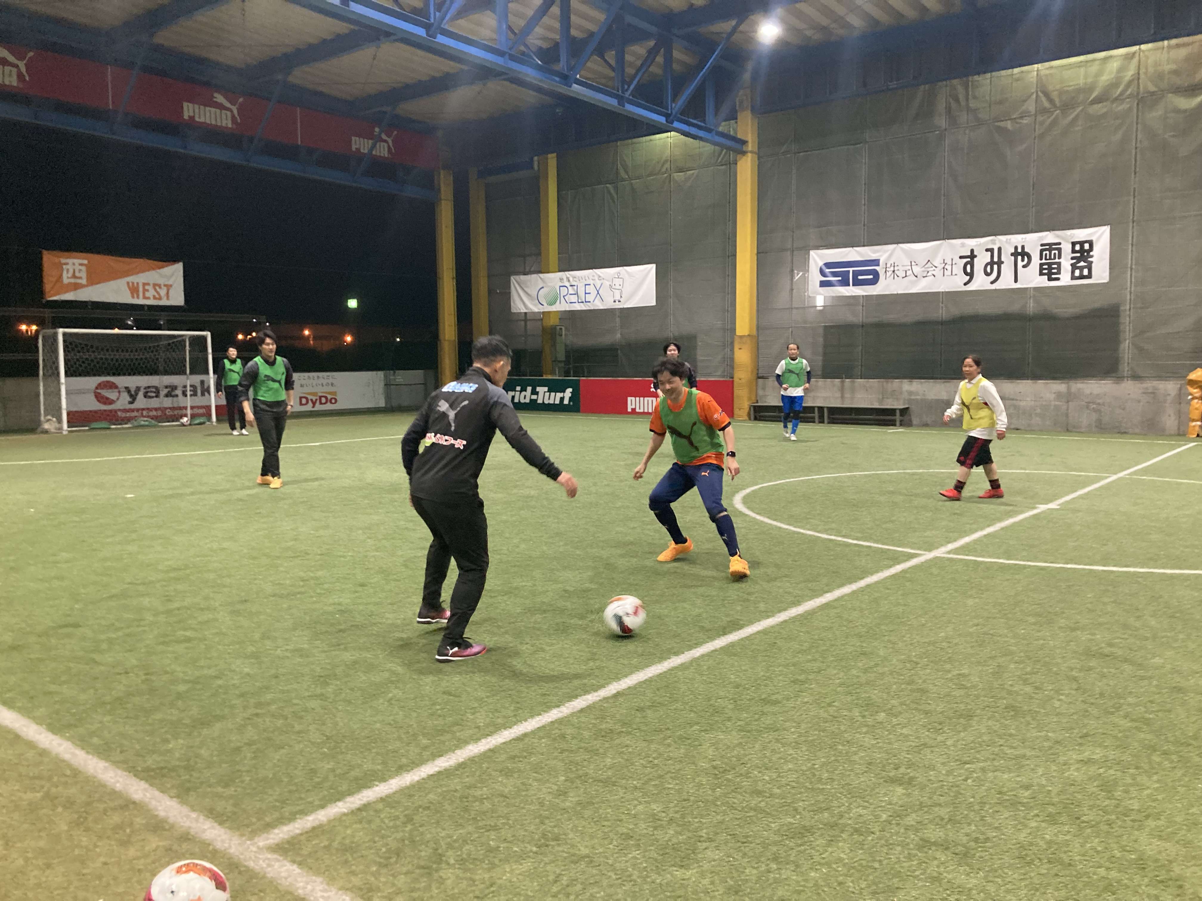 最後に5vs5のゲームを2面で行い上位リーグにはてるコーチがフリーマンとして参戦しました!てるコーチのパスを受け取り嬉しそうな皆さん。