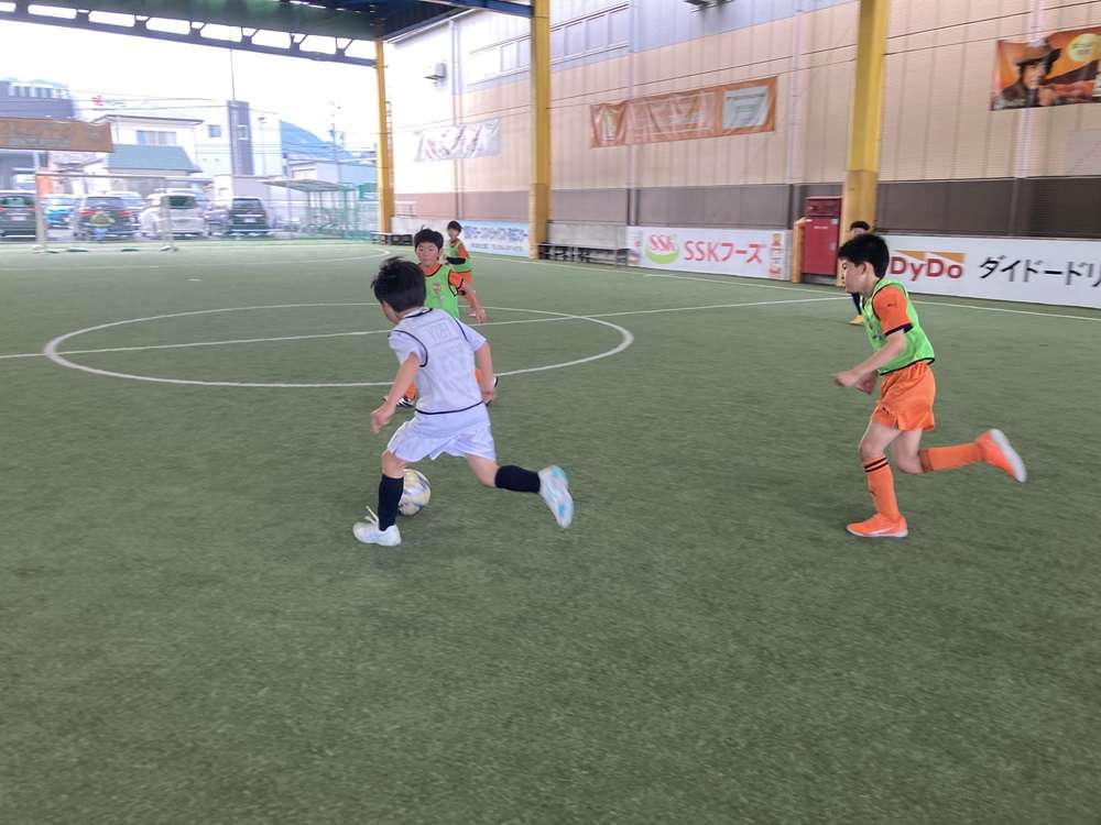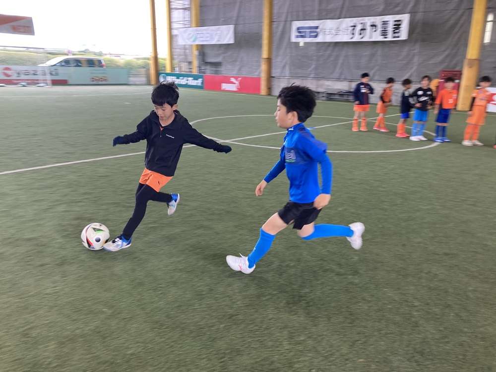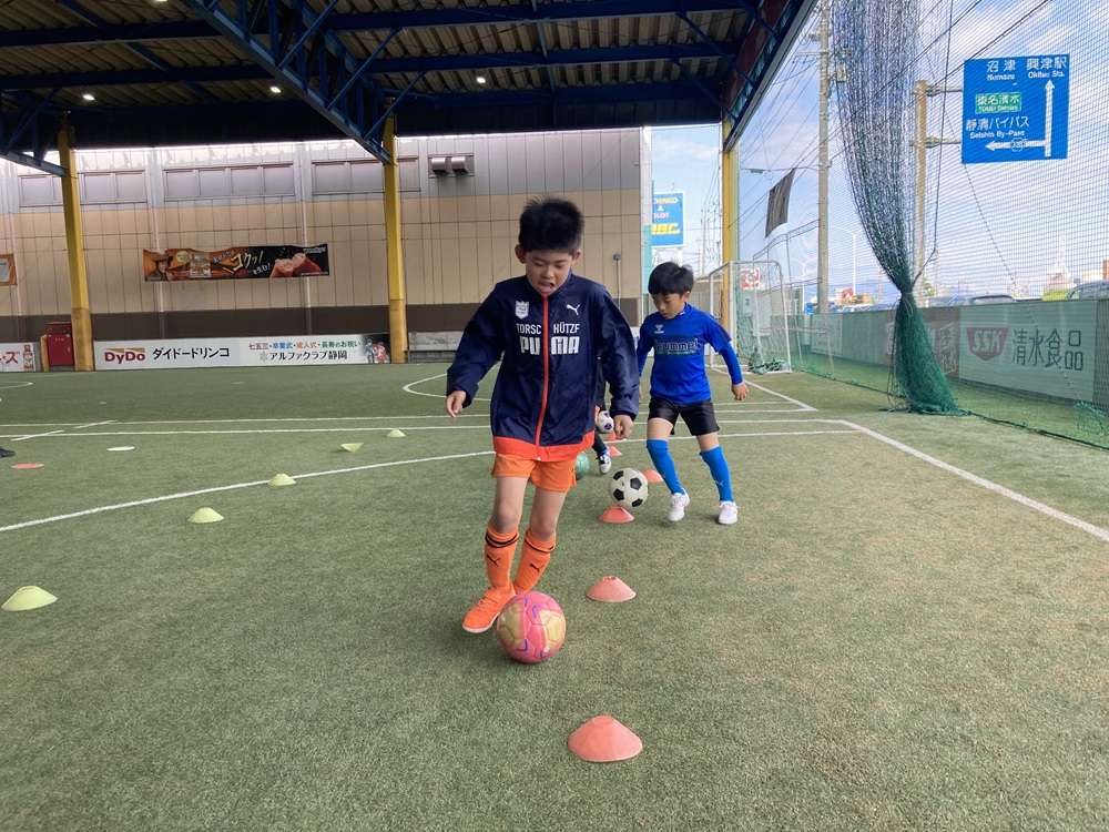 コーンに当たらないように細かいタッチでドリブル!足の様々な部分を使いドリブル!