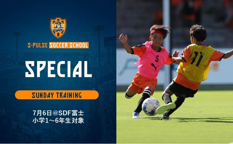 7月6日(日)にエスパルスドリームフィールド富士にて、小学1~6年生を対象に「SUNDAY TRAINING」を開催いたします。つきましては、参加者を募集いたしますので、以下の通りお知らせします。