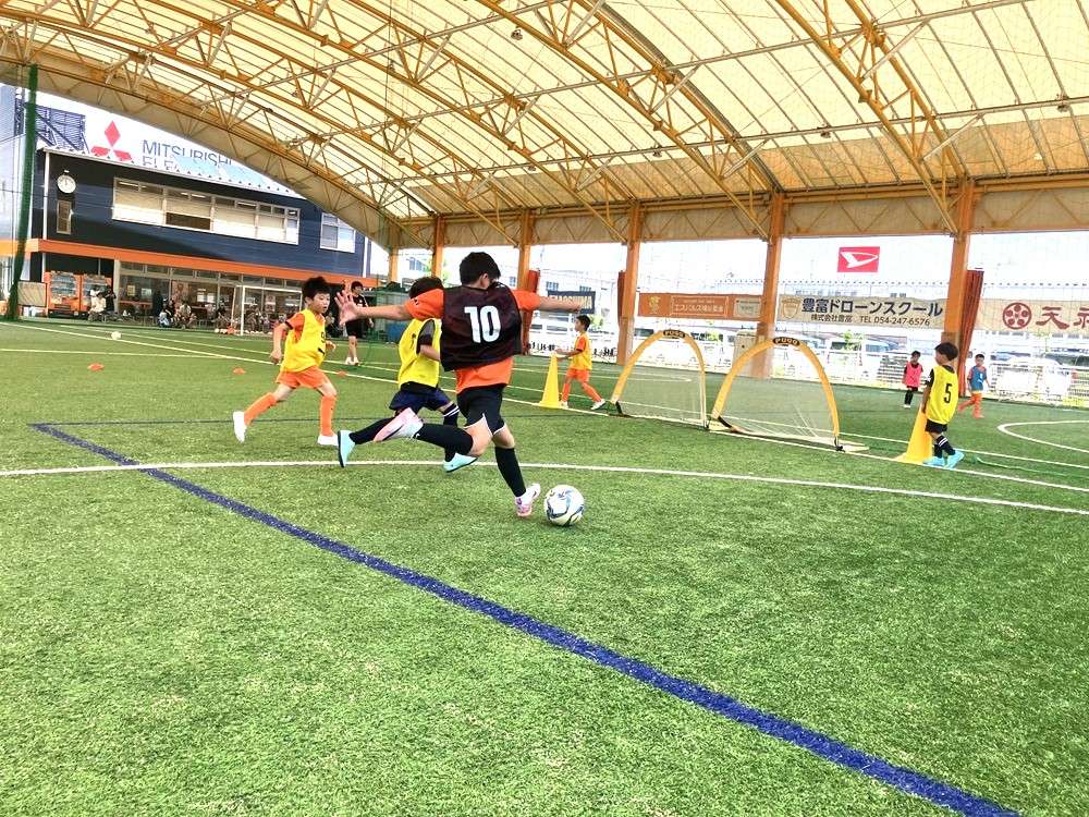 シュートを打つ前にフェイントでディフェンスを騙したり、身体の向きでゴールキーパーの逆を取ったりして駆け引きにも挑戦する様子が見受けられました。