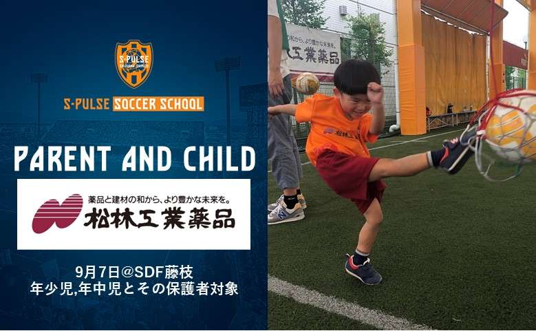 清水エスパルスは、地域事業応援パートナー 松林工業薬品 さまご協力のもと、9月7日(日)にエスパルスドリームフィールド藤枝にて、年少児・年中児の子ども1名と保護者1名の親子を対象とした『松林工業薬品株式会社 presents キッズ親子で一緒にサッカー教室』を開催いたします。