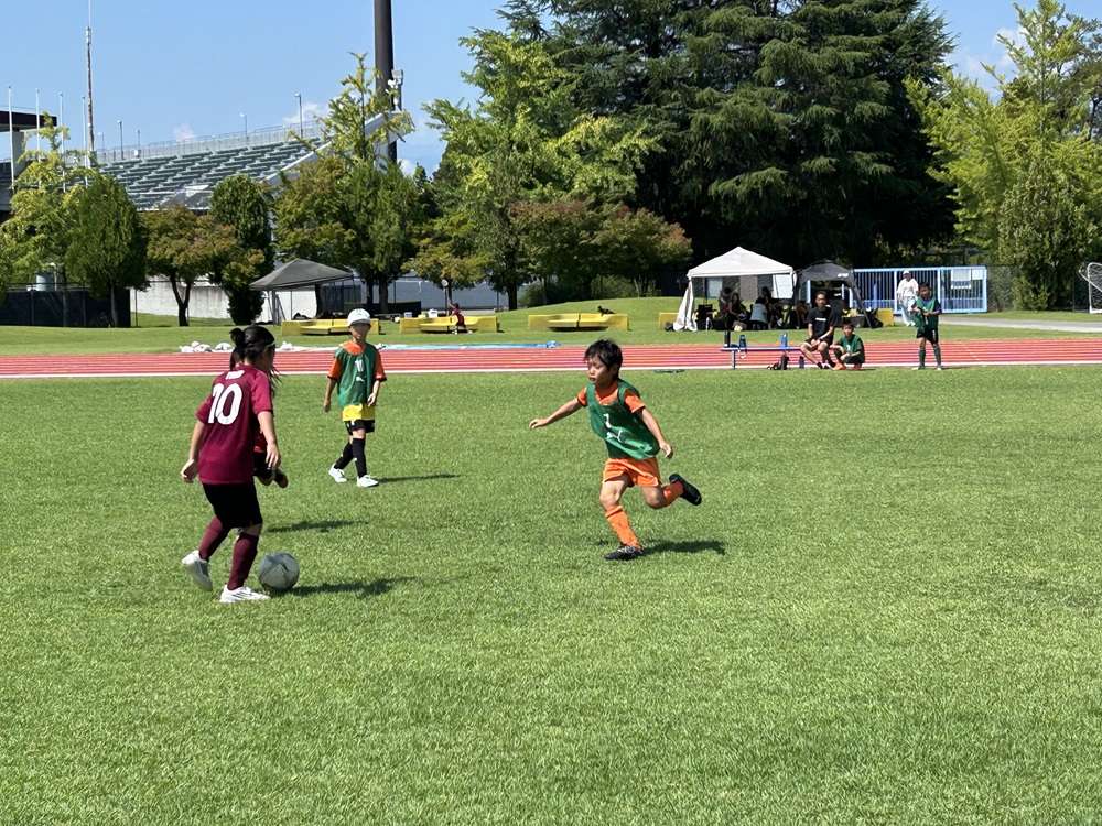 まずは御勅使サッカー場で松本山雅FCさんとユナイテッド韮崎FCさんと合同トレーニングを実施!