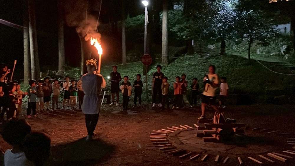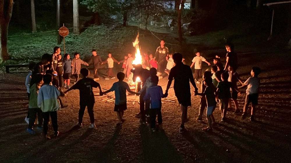 夕食後はキャンプファイヤー!みんなで火の神を呼びました。