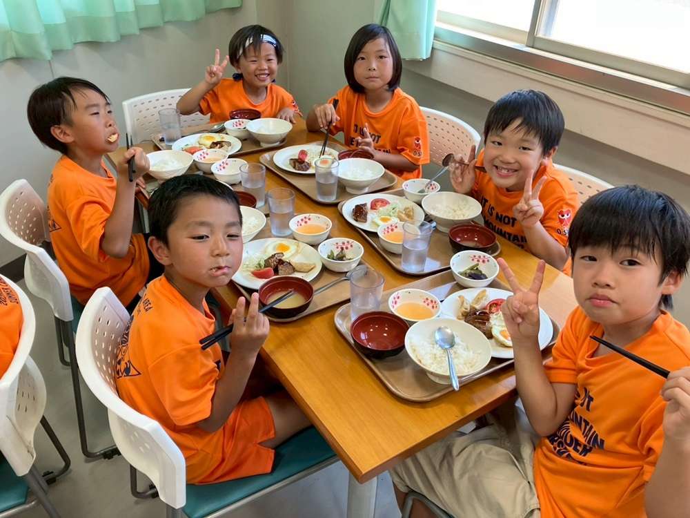 交流戦後はみんなお揃いのキャンプTシャツを着て昼食へ。