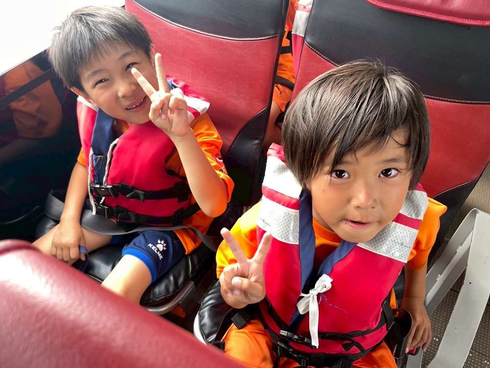 陸から芦ノ湖の広大な水面に入る瞬間、子どもたちは大興奮。