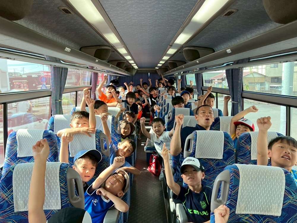 出発の朝、期待と不安を胸に子どもたちは集合しました。コーチたちからキャンプでの目的を子どもたちに伝え、バスに乗り込みます。