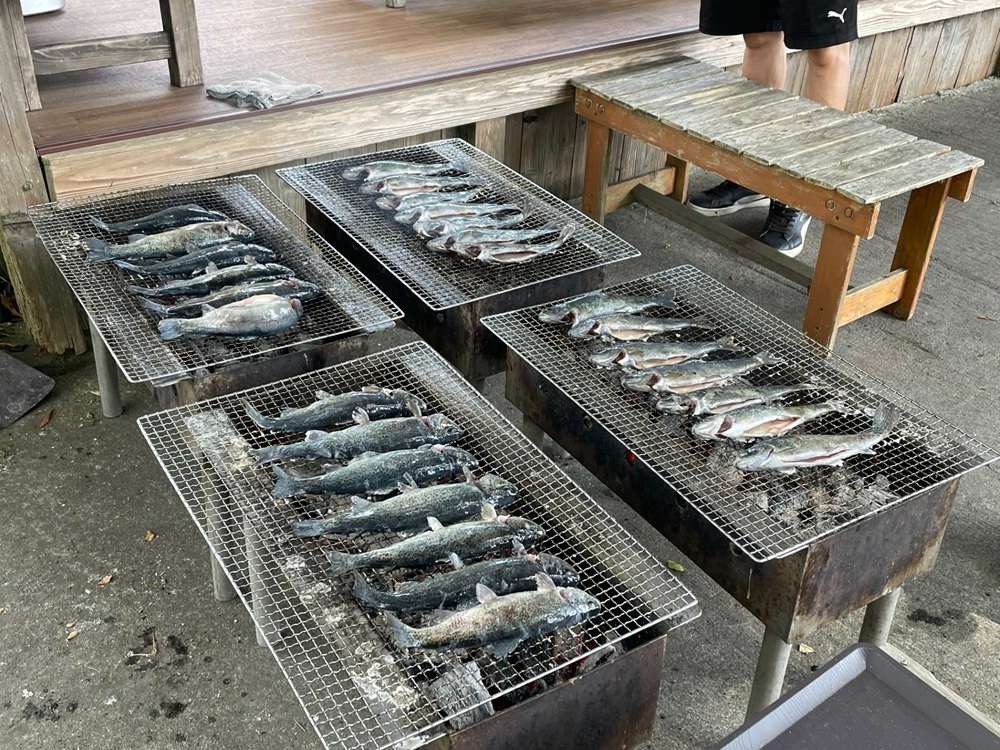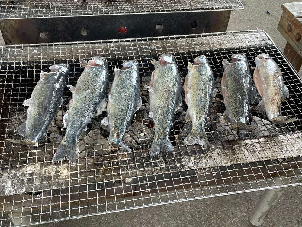 捕まえる事ができ、獲ったニジマスをその場で焼いて食べました!