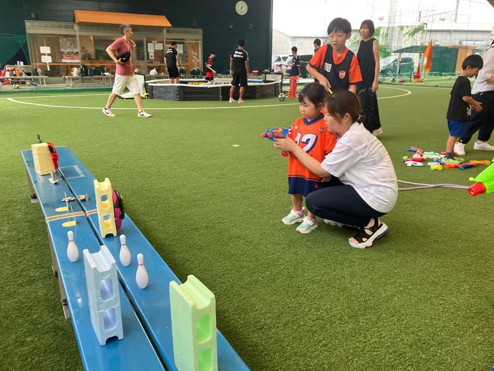 片方はアトラクションコート。ストリートサッカーや水鉄砲、キックダーツに加え、本年度はキックスピード測定が登場!