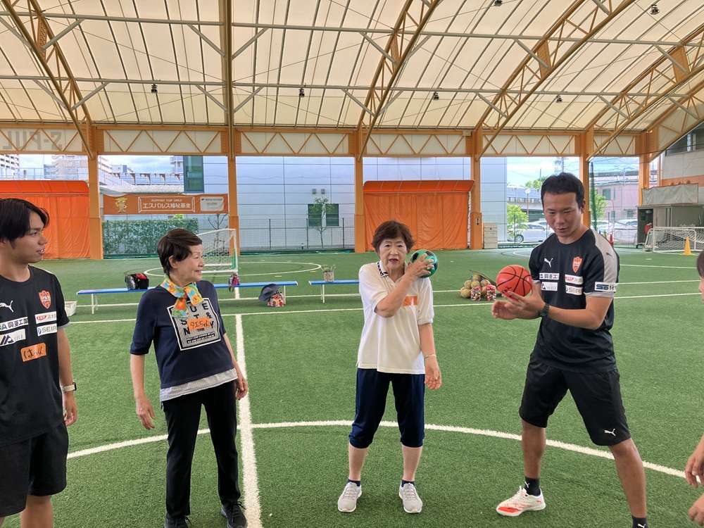 清水エスパルス藤枝エリアでは、9月11日(木)、エスパルスドリームフィールド藤枝にて、「ハッピーシニアプロジェクト」を開催いたしました。藤枝市役所のスポーツ復興課の方々にも協力していただき、当日は、60歳以上の方々7名が参加してくださいました。