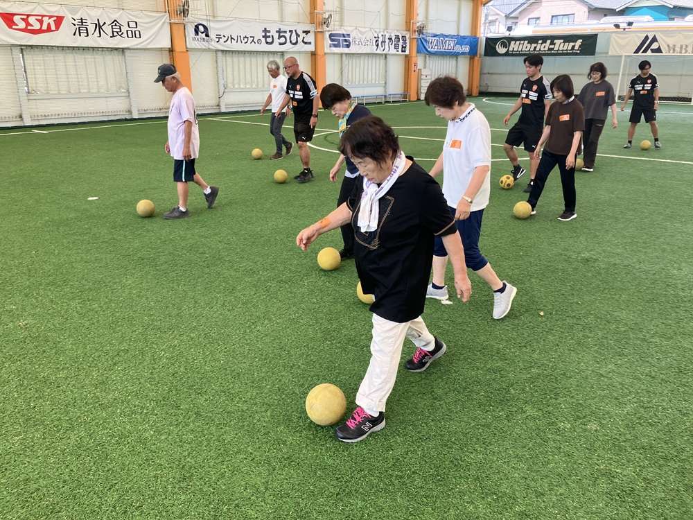 ボールやお手玉使った脳トレーニング、安全で誰でもプレーできるウォーキングフットボールを実施し、参加者全員が楽しく行える内容でした!
