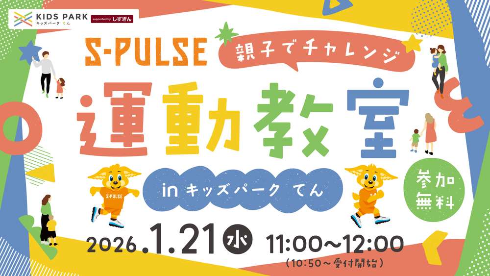 清水エスパルスはこの度、1月21日(水)に『S-PULSE親子でチャレンジ運動教室』をJR静岡駅前の「キッズパーク てん」にて開催いたします。