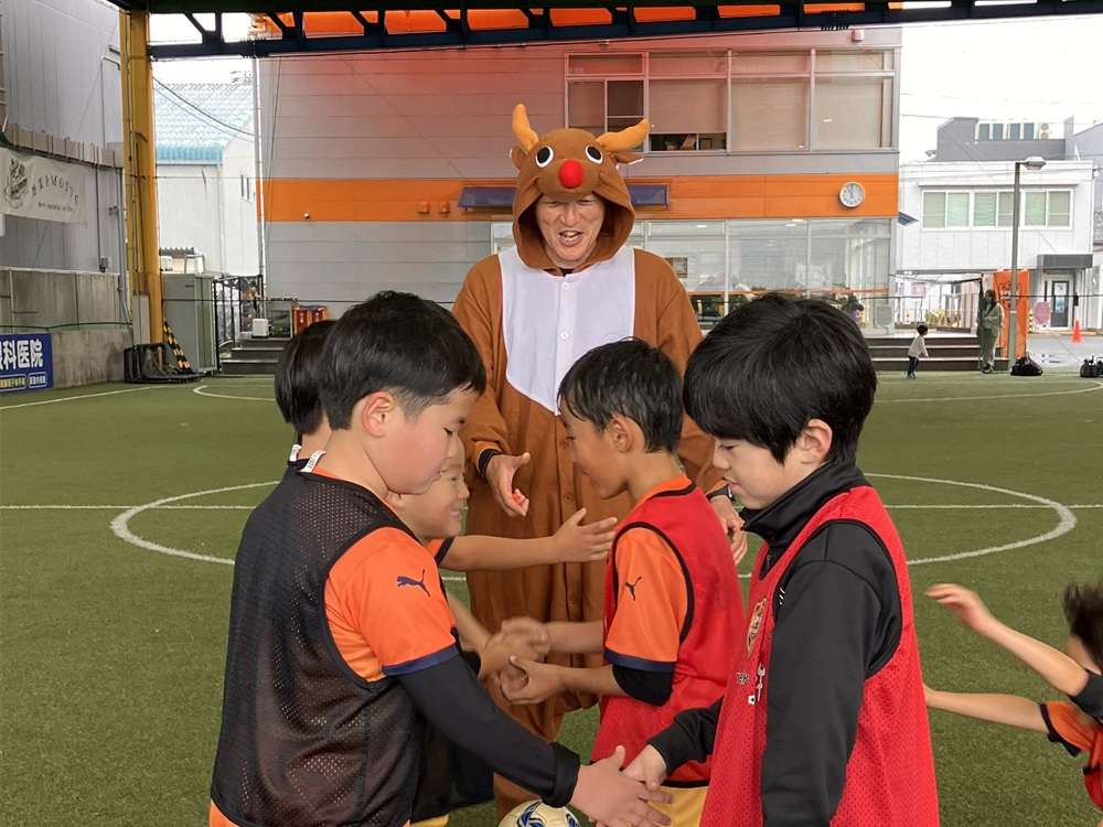それぞれにコーチたちが、サンタクロース、トナカイ、マリオなどに扮して一緒に楽しみました!