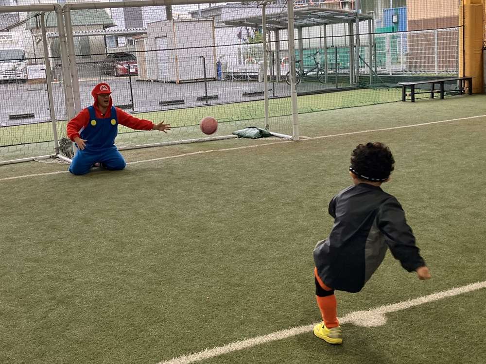 今回は、ミニゲーム(試合)、キックターゲット、サッカーボーリング、PKの4つのコーナーに分かれてのイベントでした。