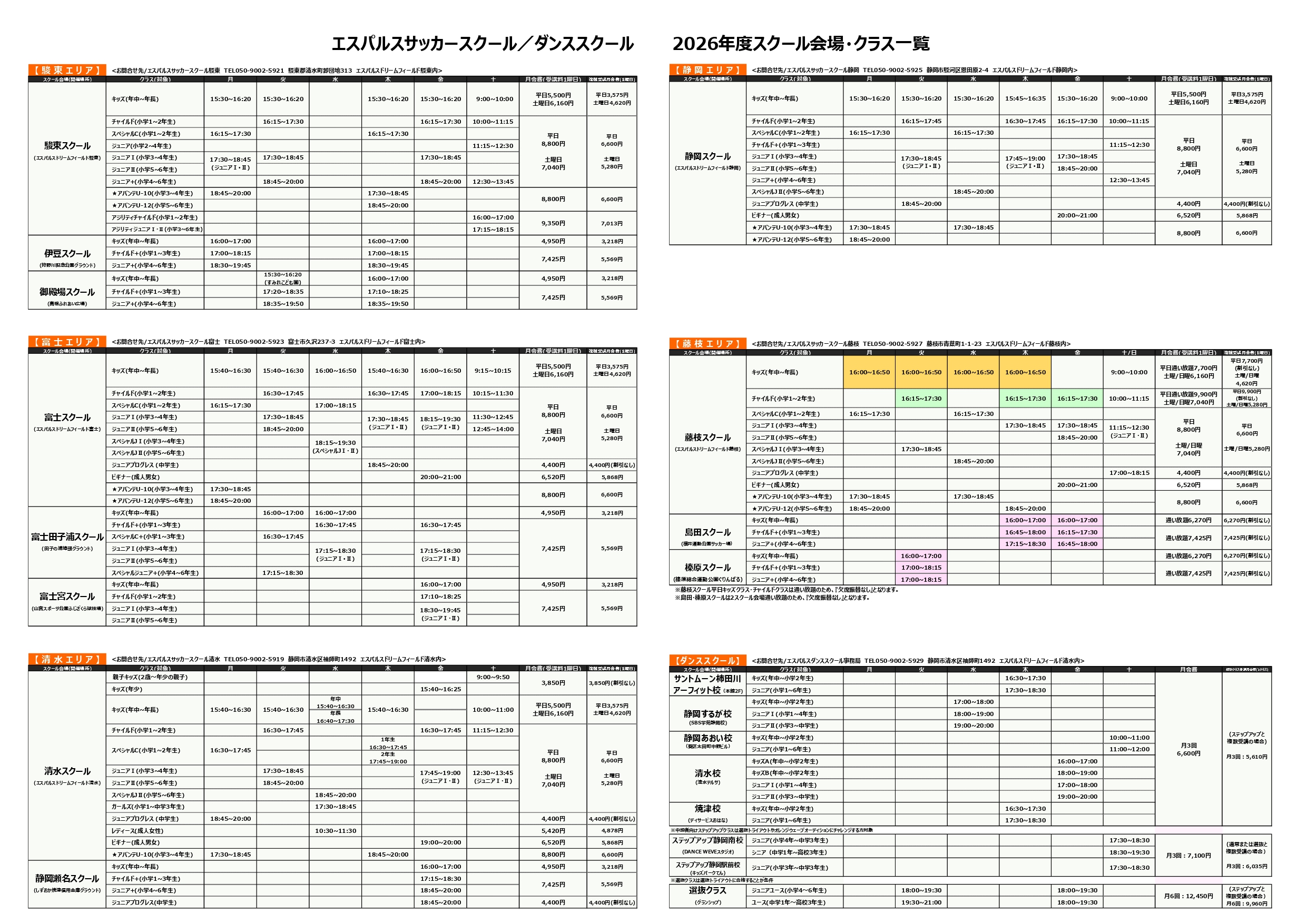 島田・榛原スクール体験スケジュール詳細は藤枝エリアにお問合せください。