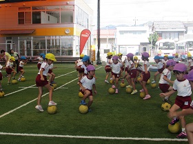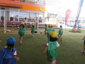 エスパルスアカデミーは8月6日、八坂幼稚園を対象にスポーツ巡回教室を実施しました。