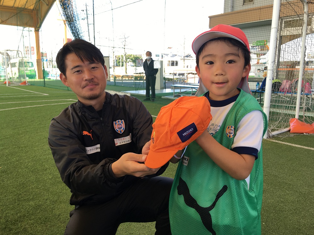 みずほ銀行様にご協賛いただき、オリジナルエスパルスキャップを園児にプレゼントいたしました ©︎︎S-PULSE