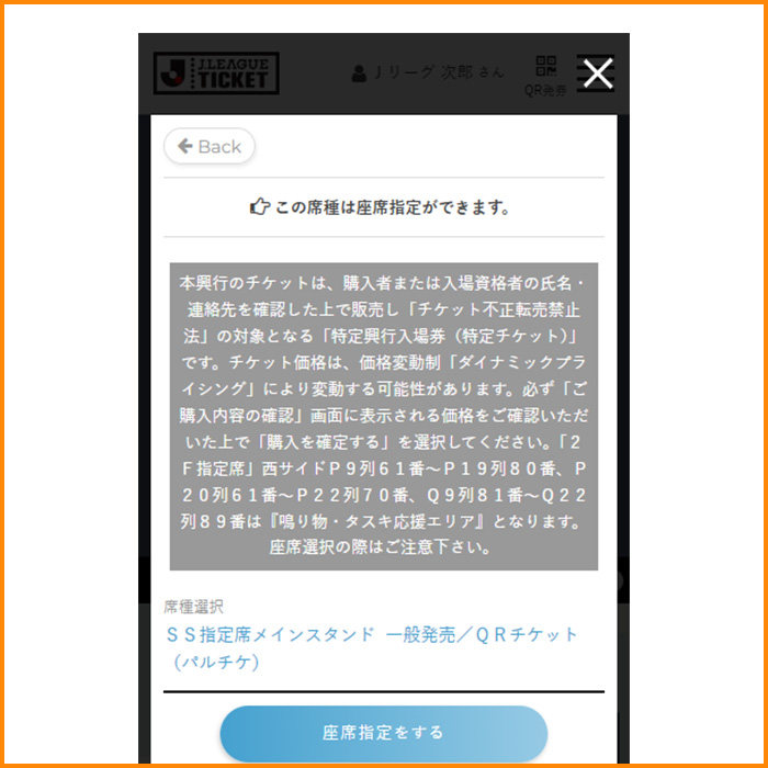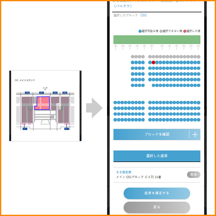 ※位置の希望がない場合は「座席指定をせずに枚数選択へ」を選択してください。 -